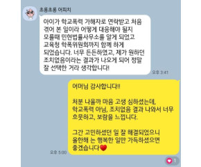 오늘은 오랫동안 피해를 받은 학생의 부모님이 학폭으로 신고했으나, 이후 상대학생측에서도 맞폭신고하여 학폭위에 가게 된 사안에서, 이를 적극적으로 입증하여 가해학생에게 확실한 처분을 이끌어 낸 성공사례를 소개해드리도록 하겠습니다. ■ 사 실 관 계 ■ 초등학교 저학년인 자연이는 남학생으로부터 지속적인 욕설을 듣고 있었습니다. 단순히 욕을 하고 끝나는 정도가 아니라, 싫다는 거부 의사를 남겼음에도 불구하고, 여러차례 속사포로 녹음한 욕설 파일이나 욕을 카톡으로 보내고, 자연이의 사진과 함께 괴상하게 생긴 캐릭터를 함께 넣고 '못생김'이라 외모비하한 이미지를 자신의 카카오톡 프로필에 설정하여 수십명의 학생들이 볼 수 있게 하기까지 하였습니다. 뿐만 아니라, 자연이의 팔꿈치를 페트병으로 세게 내리치며 가격하거나, 신체를 발로 차기까지 했습니다. 자연이의 어머님은 여러차례 담임선생님께 부탁을 드렸고, 담임선생님도 상대방과 그 부모님께 여러차례 말씀을 드렸으나, 상황은 나아지지 않았습니다. 결국, 고민 끝에 어머님이 학폭으로 신고하였으나, 분리신청 이후 가해학생이 맞폭신고하여 억울한 마음에 수원학교폭력전문변호사를 찾아 법률사무소 민현을 방문하신 사안이었습니다. 피해학생의 어머님께서는 현 상황에 대해 억울해하시면서도, 상대방의 주장이 인정될까봐 걱정하시는 상황이었습니다. 이에, 피해사실에 대해 적극적으로 주장하고, 가해신고 사안에 대해 입증할 수 있는 자료를 수집하여 소명함으로써, 가해인정이 되지 않는 것을 목표로 사건을 진행하였습니다. ■ 주 요 쟁 점 ■ 우선, 피해사실에 대해 적극적으로 소명해야 했는데, 이외에도 맞폭으로 진행되는 만큼 가해학생 측에서 주장하는 부분에 대해 제대로 소명하여 가해학생이 아님을 밝혀내는 것이 관건이었습니다. 자연이가 상대학생이 놀자고 해도 무시하고 도망가는 등 따돌림을 했다는 주장, 놀이터에서 물구나무서기를 하는데 다가가 팬티를 보았다는 주장, 본인의 친동생에 대해 못생겼다고 했다는 내용, 본인의 전화번호를 주변 친구들에게 알려주어 협박 전화가 왔다는 주장 등을 하고 있었고 이에 대해 수원학교폭력전문변호사로서 제대로 소명을 하여 상대측의 주장을 반박해야 하는 상황이었습니다. 특히 자연이가 주변친구들에게 시켜 협박 전화가 온것이라 주장하는 부분이 있었는데, 실제 자연이가 친구들과 놀던 중, 남학생과 통화를 한 적은 있었기 때문에, 이에 대해 적극적으로 소명하는 것이 관건이었습니다. 자칫 제대로 소명하지 못할 경우, 주변 친구들을 시켜 단체로 괴롭힘을 가한 것으로 인정될 수 있기 때문이었습니다. ■ 진 행 방 향 ■ 피해학생으로서 받은 피해를 입증한다 하더라도, 상대방의 주장이 인정될 경우 가해학생 처분이 경감될 수 있으며 자연이 또한 학폭으로 처분을 받을 수 있는 만큼, 피가해 내용에 대해 입증된 증거를 바탕으로 최대한 설득력 있는 의견서를 작성하기로 하였습니다. 수원학교폭력전문변호사 민현은 자연이의 친구들과 남학생이 통화한 적이 있으나, 해당 사실은 자연이가 친구들과 놀고 있는 상황에서 상대학생이 전화를 걸어, 보다 못한 친구들이 그만 괴롭히라고 하며 전화를 끊은 것일 뿐 실제 협박을 조장한 것이 아님을 적극적으로 주장하였습니다. 그리고, 학부모님께 관련하여 필요한 증거를 요청하여, 실제 상대방이 먼저 친구들에게 연락한 것임을 입증하는 증거를 제출함으로써 가해학생의 신고내용을 적극적으로 반박하였습니다. 피해사실과 관련하여 신고 이후 남학생이 자연이의 주위를 맴돌며 연락을 취하고, 직접 집까지 찾아간 내용과 cctv영상을 추가 가해사실로 제출하였을 뿐 아니라 그 이후에도 계속 접근을 시도하는 점을 부각하여 접촉, 협박, 보복 행위 금지 조치 및 무거운 처분을 내려주실 것을 요청하였습니다. 또한 학교폭력심의위원회에 참여하여, 고의성, 지속성, 심각성이 매우 높은 상황이며, 피해학생측에서 여러차례 재발방지를 요청하였고 가해학생의 부모도 이를 인지하였음에도 불구하고 오히려 맞폭으로 신고하고, 학생 또한 여전히 접근을 시도하는 것으로 볼 때, 반성의 정도, 화해의 정도는 없음을 적극적으로 주장하였습니다. ■ 사 건 결 과 ■ 그 결과 의뢰인의 자녀는 학폭 아님 처분이 나왔으며, 가해학생인 남학생은 5호 처분은 물론, 자연이에게 접촉, 협박, 보복 행위 금지가 되는 2호 처분이 병과되었습니다. 실제 신고 이후에도 지속적인 가해행위가 계속 발생하는 사안이라 입증해야 하는 사안이 매우 많은 사안이었으며, 상대방의 주장을 반박하기 위한 자료 및 소명이 관건인 사안이었으나, 수원학교폭력전문변호사 법률사무소 민현의 적극적인 대응으로 가해행위의 심각성이 인정되어, 실제 저학생임에도 불구하고 무거운 5호 처분을 이끌어낸 사안입니다. 이 성공사례를 올리고 있는 지금 이 순간에도 많은 부모님들께서 전문성에 감탄하시며, 화성 오산 성남 판교 분당 수원 학교폭력변호사로서 기울인 노력과 결과에 감사인사를 주고 계십니다. 관련하여 학교폭력 사안에 