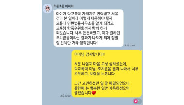 학교폭력 조치없음에 대한 부모님의 감사 문자입니다.